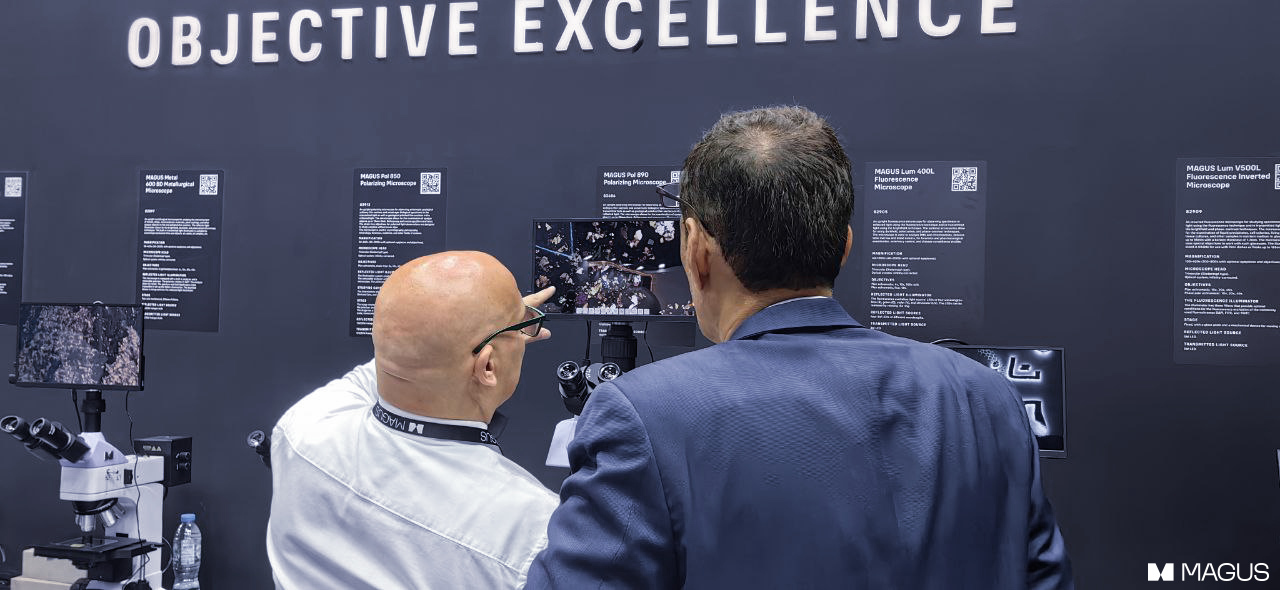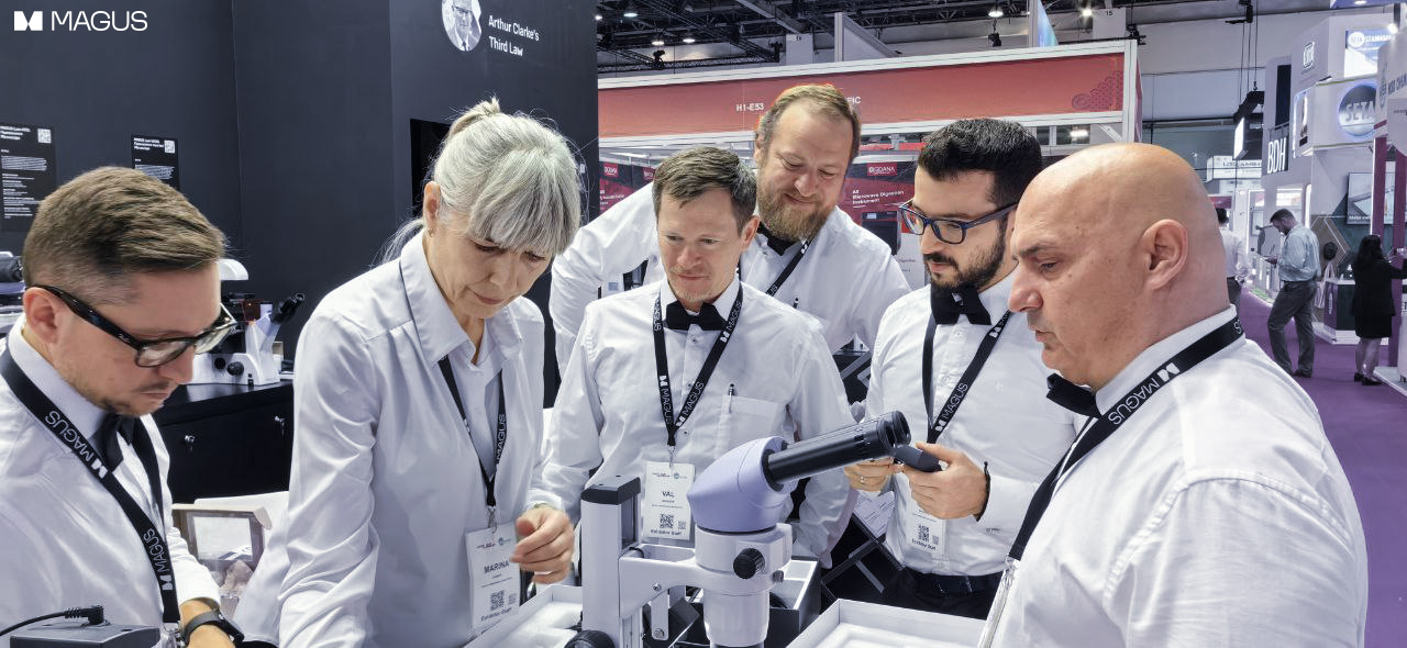 Durante i tre giorni della fiera, lo stand MAGUS ha accolto oltre 5.500 specialisti. Hanno esplorato la nostra gamma di prodotti, effettuato prove e posto domande ai nostri esperti. Molti visitatori sono arrivati con i propri campioni per la ricerca, già consapevoli dell’elevato livello di competenza dell’azienda e della sua capacità di risolvere complesse sfide analitiche. I microscopi MAGUS sono stati utilizzati per esaminare un’ampia varietà di materiali, tra cui diamanti taglio brillante, diamanti grezzi, olio, tessuti e una sottile sezione petrografica di un vero meteorite fornita dal nostro team. Questo ha dimostrato appieno la versatilità e l’affidabilità delle nostre apparecchiature.